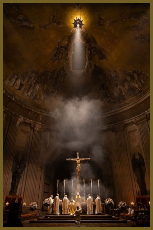 Central to this vision is an altar where the slain Lamb of God, symbolizing the Holy Eucharist, resides. John also observes golden lampstands (menorahs), reminiscent of those placed on the altar during High Mass, as well as Eucharistic and Baptismal candles. The use of incense to bless the altar is depicted, mirroring the practice in Holy Mass. Furthermore, elements such as the sign of the cross, the greeting, the Rite of Blessing, and the Penitential Rite are recorded in this vision, along with the Gloria and Opening Prayer. These components closely resemble the introductory rites of the Mass, providing a connection between the heavenly liturgy and our earthly celebrations.